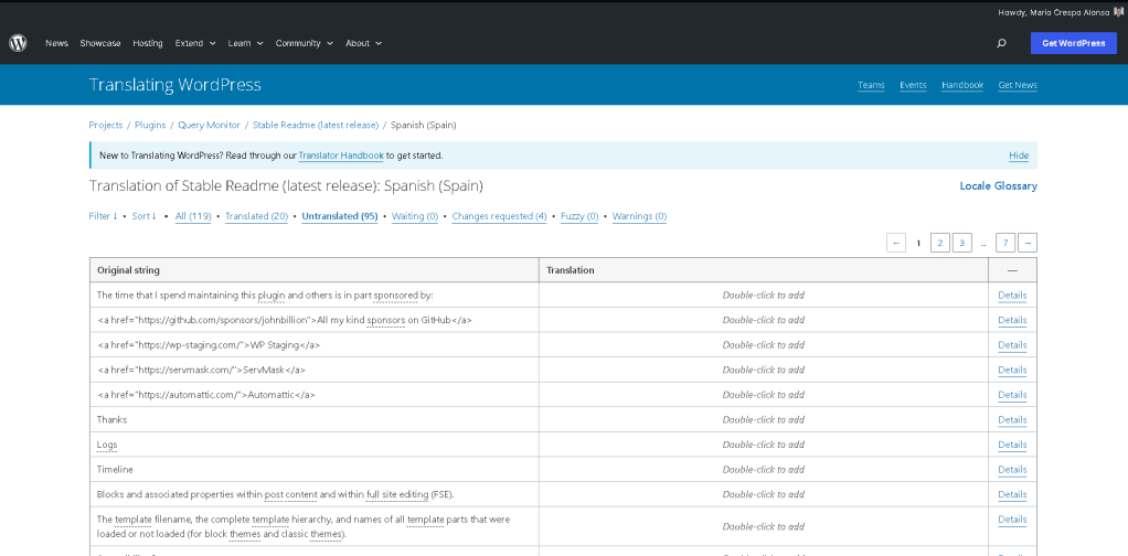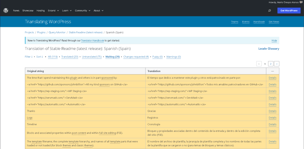 Al retomar la documentación técnica (Stable Readme) del plugin Query Monitor, identifiqué que todavía quedaban 95 cadenas sin traducir. Traducir un Readme técnico es un desafío mayor que traducir la interfaz de usuario, ya que implica explicar conceptos complejos de arquitectura, rendimiento y flujo de datos.